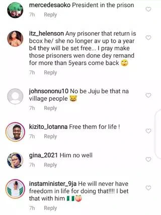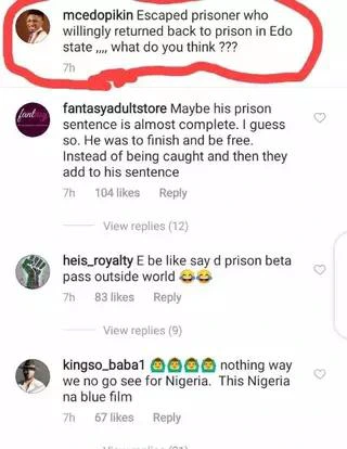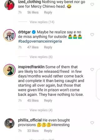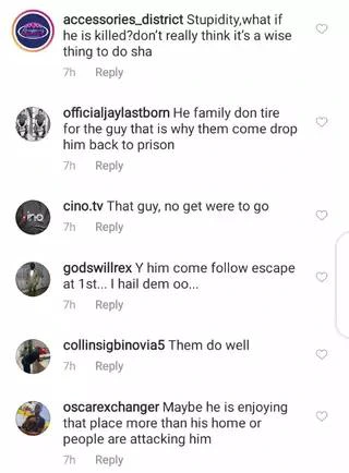 See what other people said about this. Many people have responded to this on Instagram saying maybe his prison term is nearly completed and that it would be wise for him to return, rather than being arrested and later sentenced to jail again.